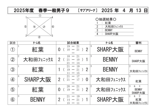 初戦の紅葉🍁さん、大和田フェニックスさんから勝利しましたが、最後のBENNEYさんには、フルセットで1セット取りましたが、2セット取られました。
