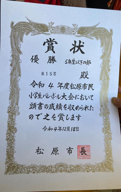 松原市民バレーボール大会 5年生の部 優勝!!、4年生以下の部 出場