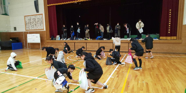練習終了20分前に、みんなが楽しみにしてたイベント🎪、節分👹の豆まき、豆だと撒いたあとの片付けが大変なので、お菓子撒き をしました。毎年恒例のイベント🎪です。