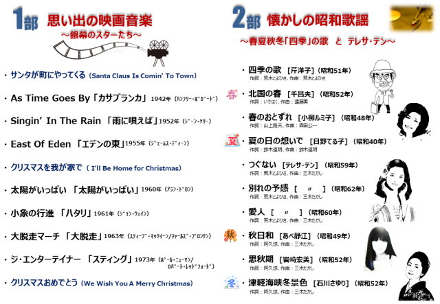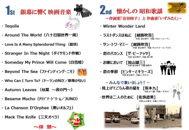 2006年から毎年12月に岩槻城址公民館の主催で行っているクリスマスコンサートの歴代プログラムの紹介です。