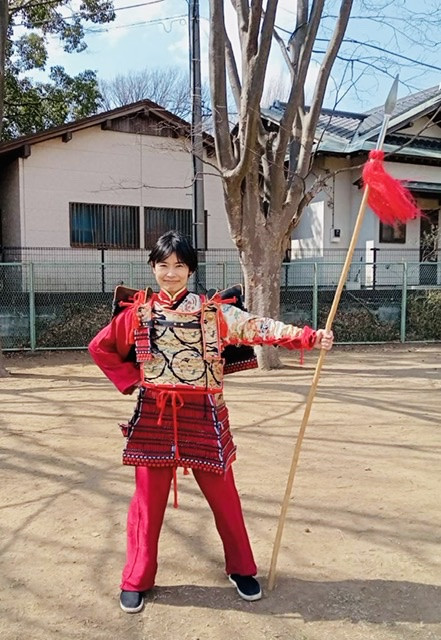 私は、塚本先生から甲冑をお借りして、人生初の「甲冑姿+槍」の姿に✨