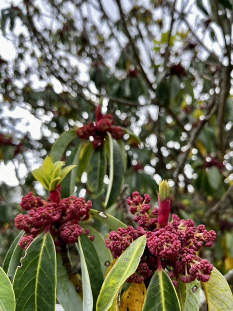 (ユズリハ[楪]、新しく出てきた葉が古い葉からいのちを譲り受ける季節。)
