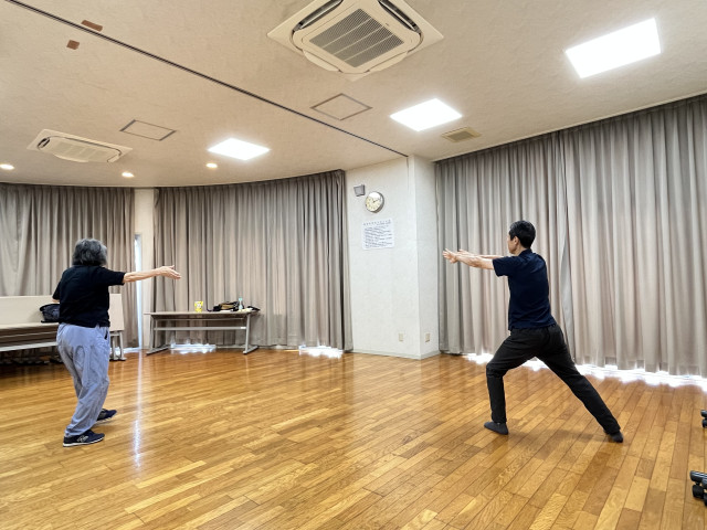 肘を引かずに張りつづけること、足を出した時に真横に出すこと、肩が上がらないようにすること…などなど、細かな点に気をつけながら練習しました。