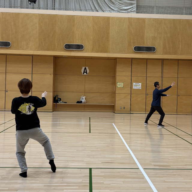 今日は、体育館で練習しました。とても広いので普段目線が近くになってしまう方は、遠くを見て動くために、壁のラインでとこを見るのか設定して練習したりしました。場所が変われば練習方法も少し変えたりして、同じ動きの練習なんだけれどいろいろな角度から練習できるんです。