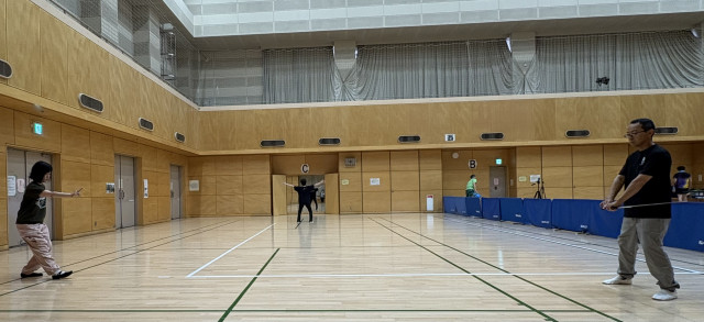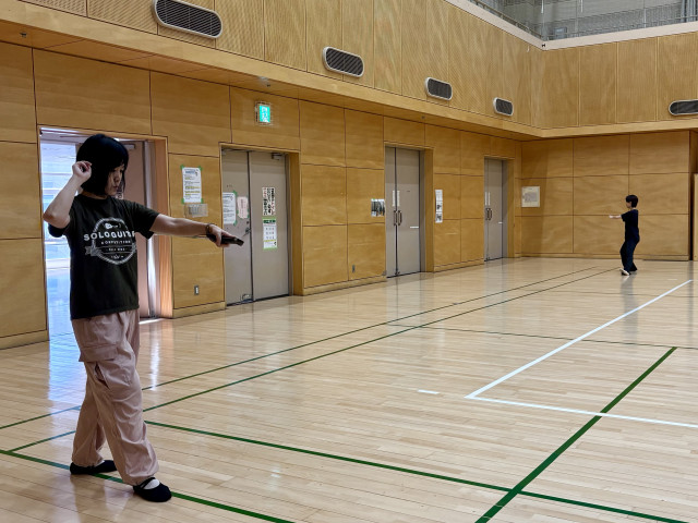 今日は生徒さん3名と一緒に、贅沢にスペースをたくさん使って、剣の動きを1時間位みっちり練習しました。