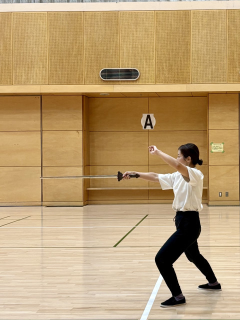 そして後半は、剣をのびのびと動きました。剣の動きで、五つの動作との共通点を意識できるといいですね。