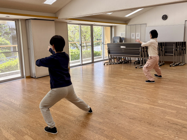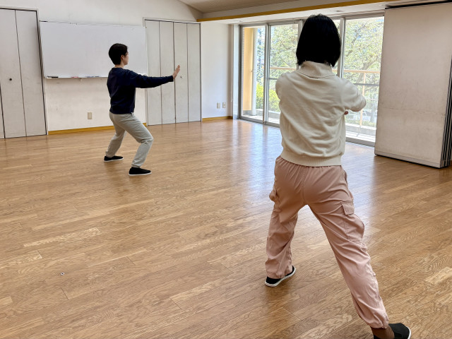 ランジャーイの動き方を少し変えて練習しました。膝を落とさず外上に向けるということを皆さんで確認しながら動きました。