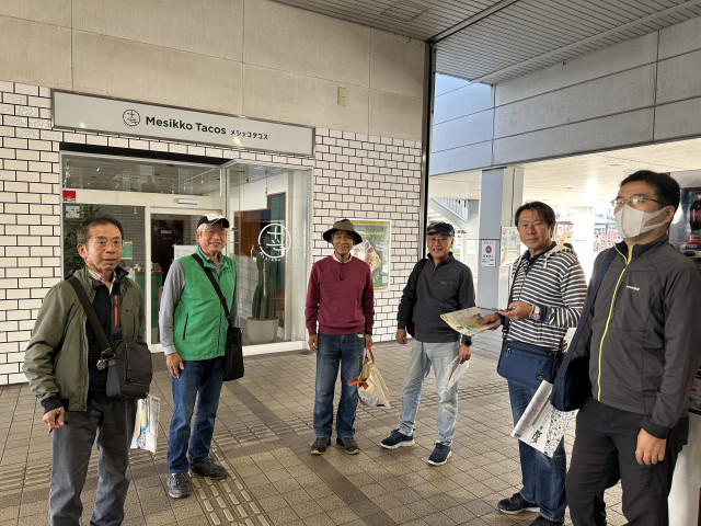 低山ハイキングの「山遊会」から、面白そうな街並みを訪ねる「まち歩き」に改称し、第一回を「三河の小京都」と称される西尾で開催しました。参加者は都立大からのゲスト参加者を含め6名、企画は津田さん、ガイドは津田さんの友人で西尾市在住の竹内さん。文化の香り豊かな西尾市を歩きました。