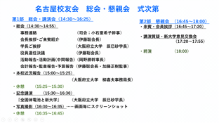 昨年はコロナで名古屋校友会総会の中止や各種活動の自粛を余儀なくされました。2年連続の総会中止を避けるべく、今年の総会は10月3日ZOOM活用のオンラインで開催しました。