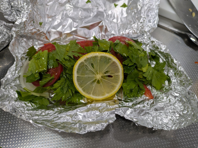 セロリの茎とはっぱを両方入れたホイル焼きは新鮮でおいしい🌿