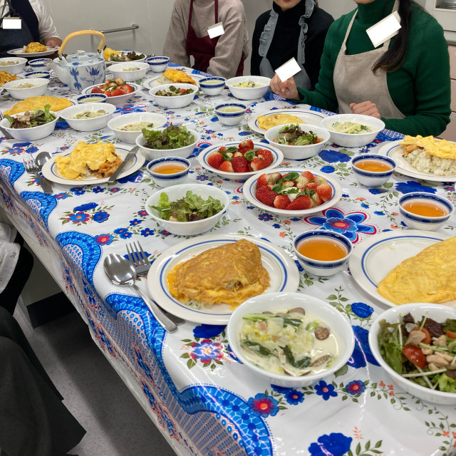 このほかにも、いちごをたっぷり使ったブラータ、特売でゲットしたアサリのクリームスープ、こんがりと焼いた鶏のソテーを混ぜたサラダなど、みんなで手分けしてたくさん作りました🥗