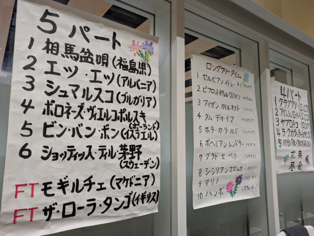 それぞれに分担して書いた壁プロがあり、古い曲、ラズヴィヴァイ・ドブロ(ブルガリア ′88)があったり、JBミルン(SCD ′54)があったりと、すっかり忘れていた曲もあり、サマー(東北連主催の夏期講習会)の新曲も入っていて、盛りだくさんでした。