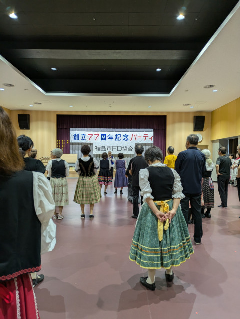 10月11日(土)に福島市フォークダンス協会の創立77周年記念パーティーが福島市市民センター大ホールで開催され、参加者69名(うち福島市協会員12名)がダンスを楽しみました。