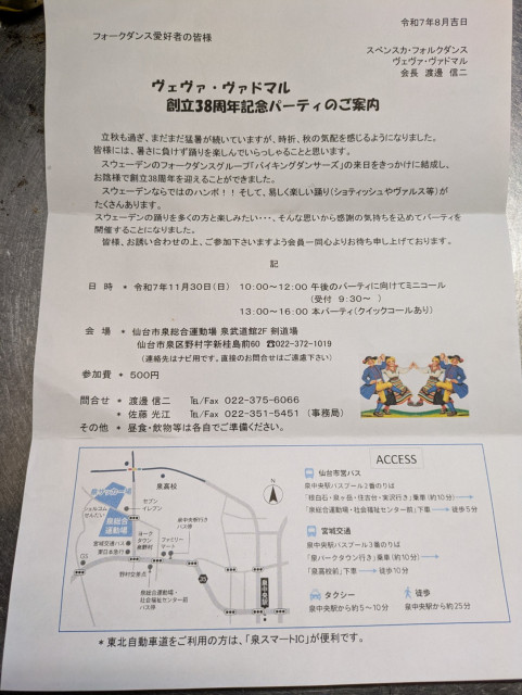 11月30日(日)に仙台市の泉総合運動場の剣道場で、ヴァヴァ・ヴァドマルの創立38周年記念パーティが開催され、会員を含めて40人が参加し、楽しみました。🎶