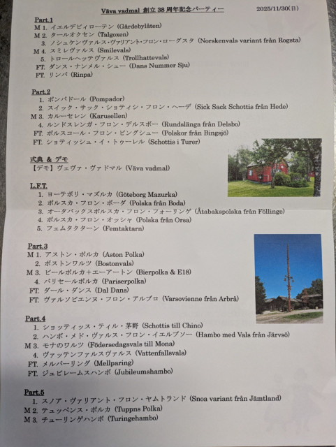 ヴァヴァ・ヴァドマルは、スウェーデンの曲をメインに踊っており、ハンボ、ショティッシュ等の回転する踊りが多いのですが、中には、SCDでもECDでもないセットダンスがあります。慣れないので、少し戸惑いましたが、踊ってみると面白いものでした。