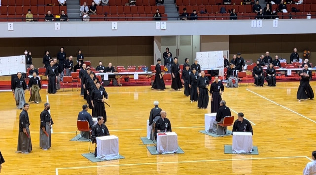 都道府県別対抗試合として団体戦が開催され、全国から多くの居合道人が集まりました。