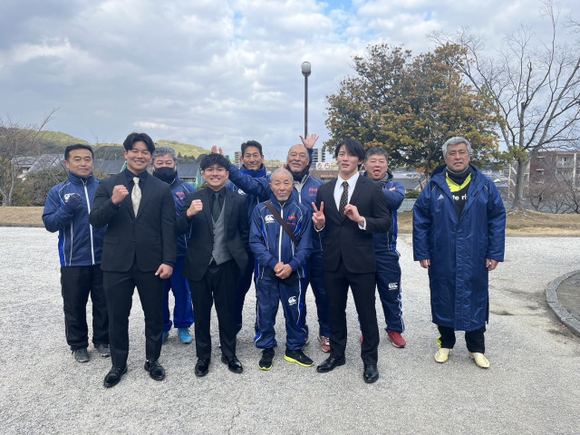 今年、初めての練習を原田公園のグラウンド行いました。成人式の前にスーツを着用したOBが遊びに来てくれました。成長した姿にコーチ陣も笑みが溢れてました。