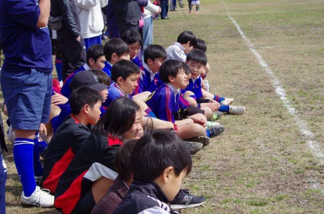 ブランビーの卒部式はグランドで中学3年生と中学2年生、中学3年生とコーチ軍団との試合で送り出します。
