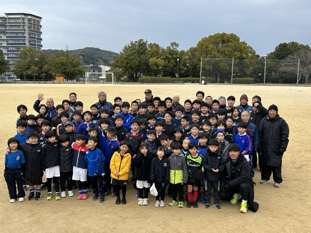 練習前に筑紫神社へ行き安全祈願を行なった後に2025年のコーチ体制を紹介しました