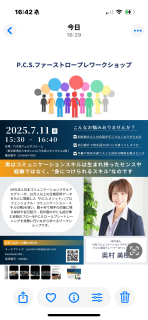 このワークショップは、NPO法人日本コミュニケーションスキルアカデミーが、10万人以上の企業研修データをもとに開発した「P.C.S.メソッド」の略)を使い、数十秒で、相手の印象に残る挨拶や自己紹介、初対面の方とも話が弾む会話のフローをP.C.S.ロールプレートレーニングを実際に行いながら学ぶことができます。