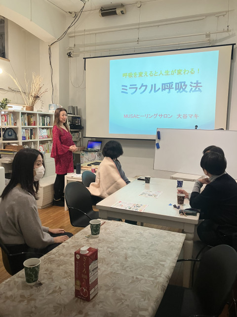 効果的な呼吸法を教えていただき、その場でみんなでやってみました。