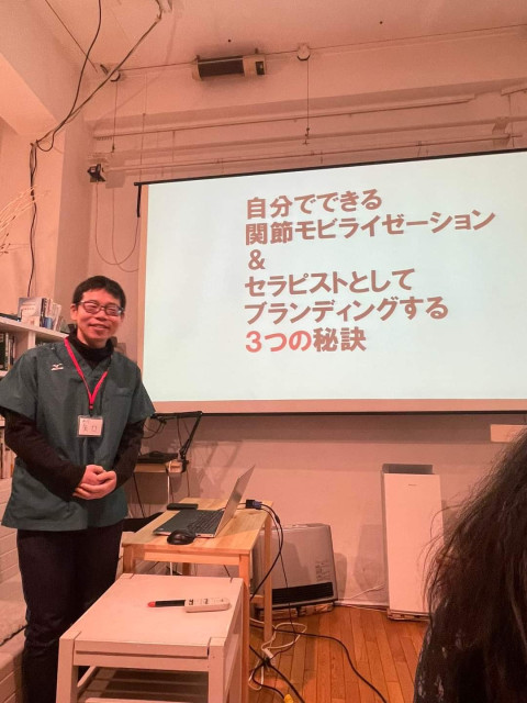 骨盤を触りながら、みんなで運動をしました 可動域が上がりました
