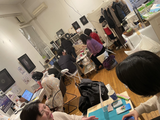 沖縄の水華さんの点描画が展示されている中のエネルギーで、強烈なパワーを感じながら、集中してできました。