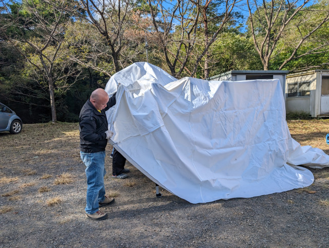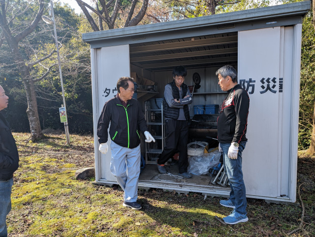 今日は都合の良い役員とそのご家族様にお力をお借りしまして、防災倉庫の点検とテントの点検を行いました。11月19日の関ヶ丘防災フェスで使用する備品などの確認も行いました。