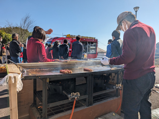 炊き出しの焼きそば、豚汁、フランクフルト大好評でした♪