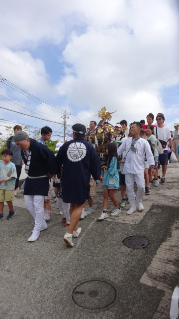 子供神輿巡行1日目の写真です。 (神事)→5区→6区→1区