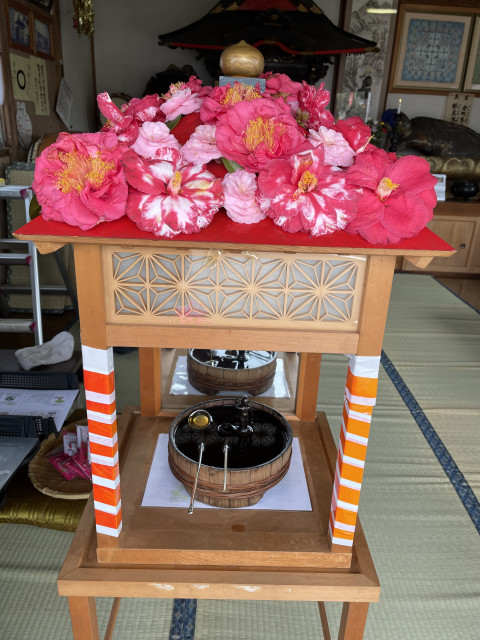 お釈迦様の誕生を祝う「小園地蔵堂花まつり」の写真です。