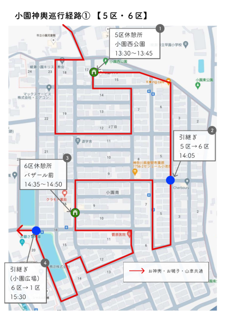 令和6年度子供神輿巡行(10月5日&6日)の概要とルートについて、 情報を画像として添付します。 見学の参考としてください。