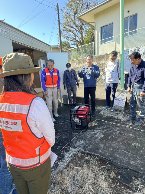 課題として、燃料の期限切れ、倉庫内の整理整頓、簡単な操作マニュアルの作成、などがありました。今後更に訓練、及び機材の充実、整理など進めていく必要があると感じました。