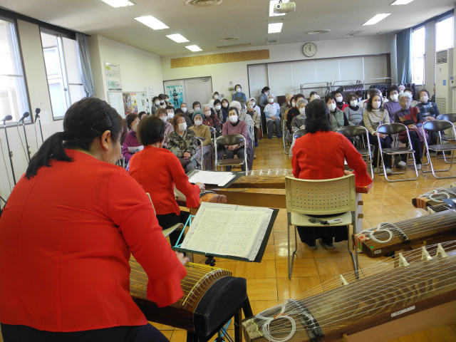 〝東風夜曲(とんぷうやきょく)〟に始まり〝鳥のように〟〝浜千鳥〟〝待ちぼうけ〟〝冬げしき〟琴の響きが会場を包みました。最後に〝青い山脈〟を皆さんと合奏して新しい年の門出を祝しました。会場に響き渡る琴の音に癒やされた方もいたようです。