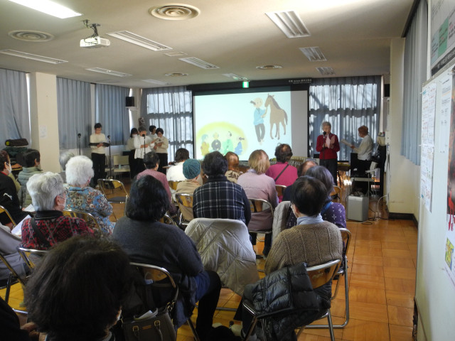 次はワンハート綾瀬ボイス(講師:斉藤恵美子様)の8名の皆さんの朗読劇、おもしろ川柳、早口言葉、最後は合唱です。