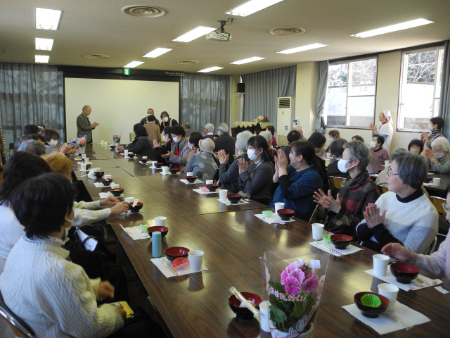 食生活改善推進協議会の方々が朝から準備してくれた〝お汁粉に〟舌鼓をうちながら、「今日は楽しかったね。琴の演奏が正月の雰囲気を醸し出してくれた。次も地域にまつわる朗読劇やってもらいたい。お汁粉もちょうど良い甘さで美味しかった。」などのおしゃべりが聞こえてきました。