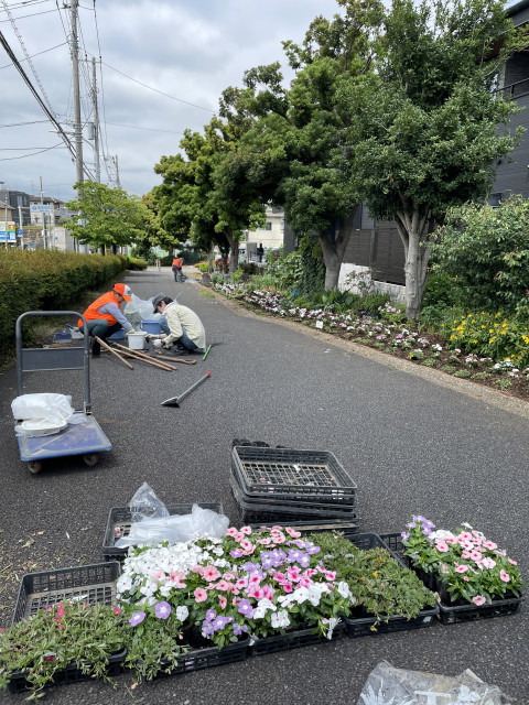 こちらは有志の方々によって保たれていて、今回は日々草とポーチュラカを植え、秋にはパンジーの植え付けを行う予定です。