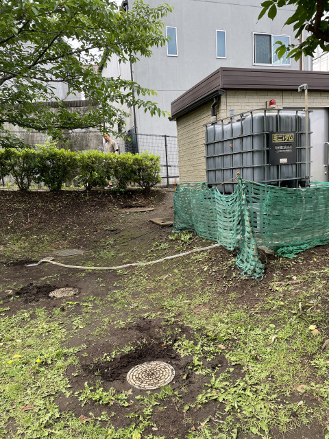 4区中央にある小園公園には、仮設トイレを設置するためのマンホールが3個造られています。貯水タンクの水を流すと、本下水道まで繋げて流すことができます。