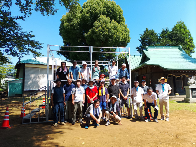 7月26日(土)9時から小園子之社境内に小園自治会盆踊り会実行委員会から20名以上の方が集合し、納涼盆踊り会に向けて櫓建てを実施しました。