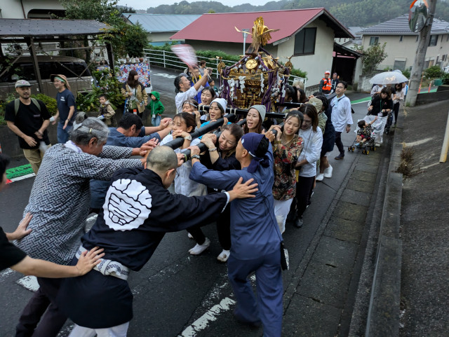 お囃子の太鼓の音が聞こえてくると、沿道の方々が家から出てきて声援を送って、お賽銭も入れてくれました。