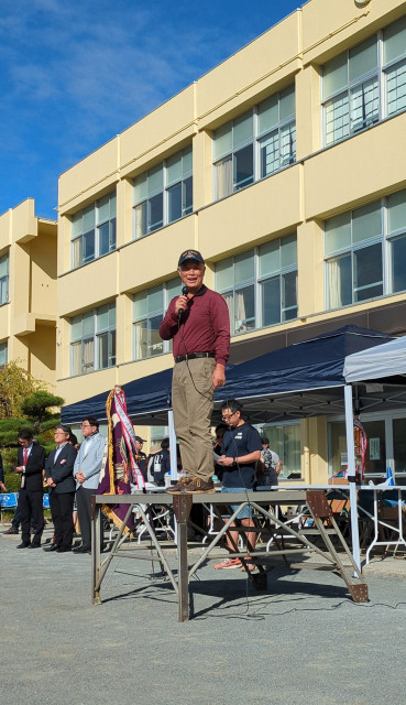 「2年ぶりの体育祭です、去年の分も2倍頑張りましょう。昨日ドジャースの試合で大谷がホームランを3つ打ちました。皆さまもそれぞれの中でホームランを打てるように頑張って頂きたい。