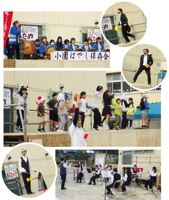 ステージでのパフォーマンスは、他にもたくさんありました。たんけんクラブ(学童保育)のダンスメドレーや子ども会のダンスは、会場を大いに盛り上げ、音楽に合わせて楽しく体を動かすズンバサークルのダンスや大道芸人(見習い)しんさく君の「1人deサーカスショー」が今年も楽しい時間を演出してくれました。城山中学校吹奏楽部の演奏では、会場の皆さんが耳を傾けて素晴らしい演奏に聞き入っていました。