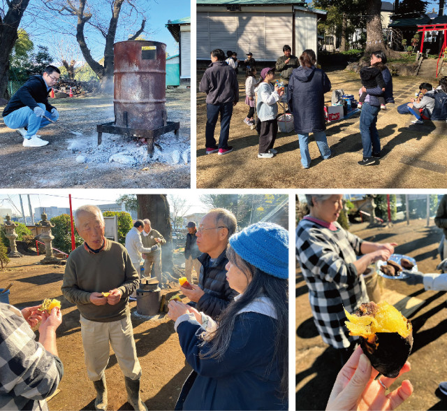 そして今年も子ども会が行う『焼き芋会』も同時開催されました。薪で焼き上げたお芋は中までしっとり甘く、子ども達も大喜びで頬張っていました。餅つき会にも差し入れがあり、皆で美味しく頂きます。