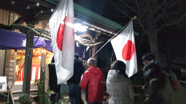 境内に置かれたラジオから零時を知らせる時報が鳴ると、氏子総代長が新年のあいさつを行い、新年の参拝がスタートしました。