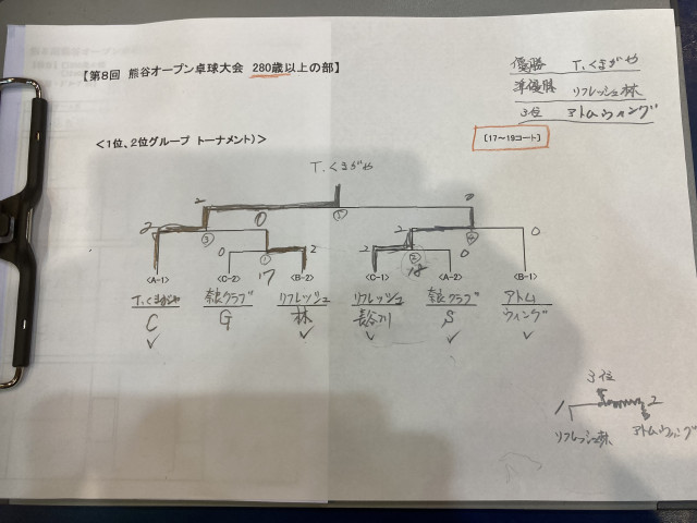 【試合結果】加須こいのぼり卓球大会 男子シニア結果 20250608