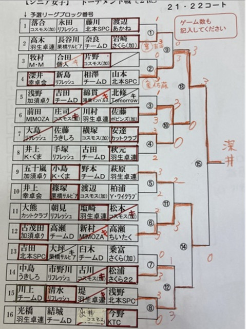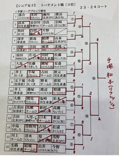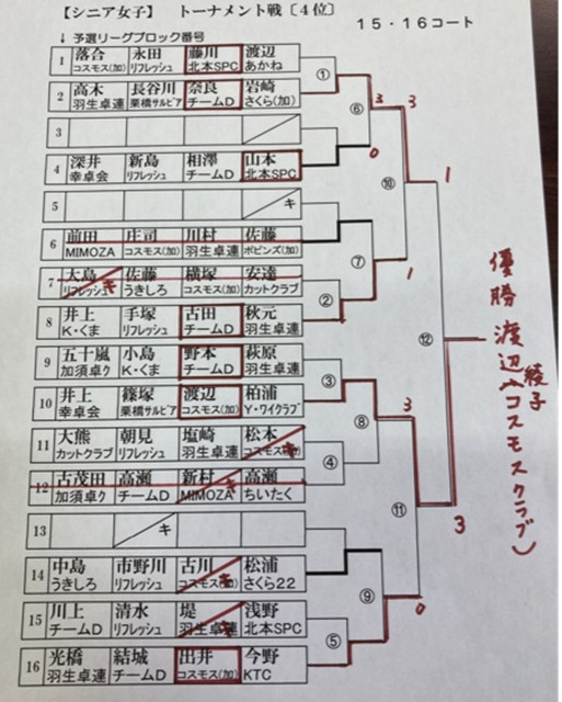 【試合結果】加須こいのぼり卓球大会 女子シニア結果 20250608
