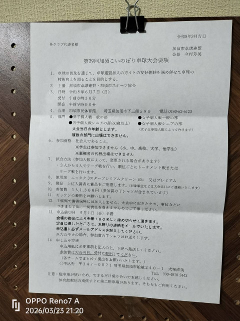 ★加須こいのぼり卓球大会