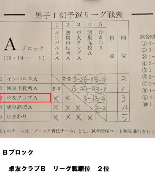 男子(リーグ戦結果)