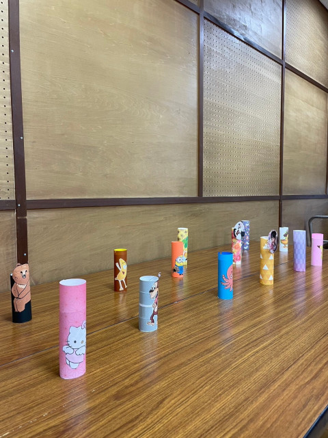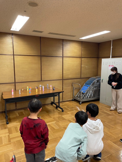 保護者の方が作ったかわいい的に向かって、輪投げや射的で狙い撃ち!楽しそうにお菓子もゲットです。