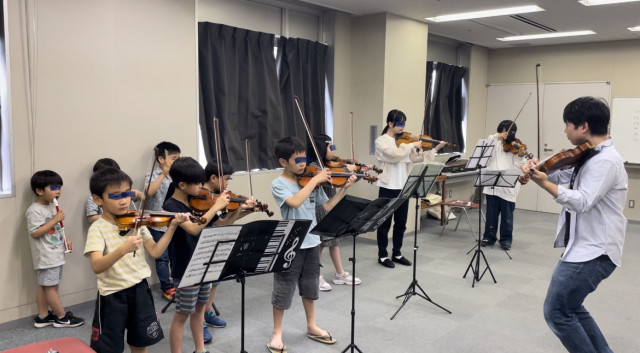 斉奏曲の練習では音程やリズムの他に、弾き終わった時に「あれ?自分だけ弓の向きが違う」ということがないように、しっかりボーイングのチェックもしました。